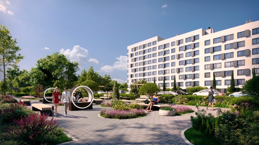 Благоустроенная территория: Для отдыха жителей предусмотрены детские и спортивные площадки, зоны для тихого отдыха и подземный паркинг.