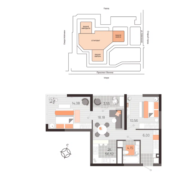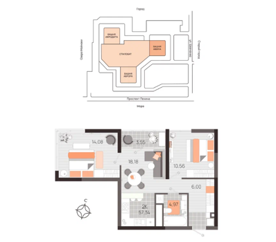 Площадь от 56.5 м2